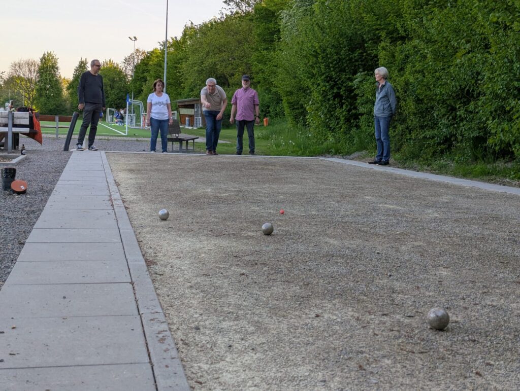 Bürgermeister Markus Baier und LEADER-Regionalmanagerin Susanne Weishaupt besuchten kürzlich die Sportanlage und folgten der Einladung der Kirchheider Boule-Gruppe, direkt die neuen Bahnen auszuprobieren. „Durch das Projekt des TSV Kirchheide werden gleich mehrere LEADER-Aspekte aufgegriffen, wie Förderung des ländlichen Raums, des gesellschaftliches Zusammenhalts und die Stärkung der Lebensqualität vor Ort“, so Susanne Weishaupt. Nachdem er ein Boule-Set übergeben hatte, fasste Bürgermeister Markus Baier zusammen: „Es zeigt sich, was eine gute Gemeinschaft aus Jung und Alt gemeinsam erreichen kann. Das generationenübergreifende Freizeitangebot in Kirchheide ist damit reicher geworden.“ Ähnlich sah es der Vorsitzende des TSV Kirchheide Dirk Hartwig: „Als Sportverein ist es für uns wichtig mit der Zeit zu gehen und unser Angebot ständig weiterzuentwickeln. Das Interesse an Boule ist im Verein und im ganzen Ort sehr groß.“
