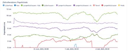 Wie genau kann man Hochwasser eigentlich vorhersagen? Dafür benötigt es verschiedene Daten, wie zum Beispiel die Niederschlagmenge an neuralgischen Stellen und die aktuellen Pegelstände der örtlichen Gewässer. Auch im Kalletal und in Lemgo können die Bürgerinnen und Bürger seit Anfang des Jahres auf einem sogenannten Dashboard im Internet die entsprechenden Werte einsehen. Wie hoch steht aktuell die Osterkalle in Tevenhausen oder welchen Pegelstand hat gerade die Ilse in Entrup? Genau diese Fragen beantwortet das Hochwasserinfosystem des Modellprojektes Smart City, besser bekannt unter digital.interkommunal. Wer auf der Webseite Kalletals „Leben in Kalletal“ anwählt, kann sich auf dem Dashboard die Informationen des Hochwasserinfosystems für das Kalletal einholen, genauso wie die Bürgerinnen und Bürger Lemgos, die unter „Bauen und Umwelt“ bei „Gewässer und Entwässerung“ auf der entsprechenden Webseite fündig werden. Wer es gern Mobil hat, kann auch per Kalletal App oder Lemgo App diesen Weg gehen, um die momentanen Pegelstände und aktuellen Niederschlagsmengen über den Button „Rathaus“ aufzurufen.