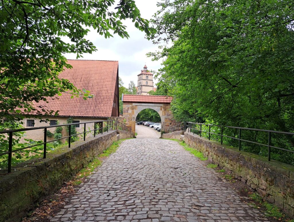 Die Schäferbrücke wurde um 1800 gebaut, ist gut 35 Meter lang und vier Meter breit. Durch drei Gewölbe fließt die Bega unter der denkmalgeschützten Brücke hindurch. Die Sanierung wurde bewusst in den August verschoben: „Wir wollten mit der notwendigen Sperrung erst das Schützenfest abwarten“, erklärt Matthias Rath. Bis zum Abschluss der Arbeiten ist die Zufahrt zum Schlossgelände nur über die Pagenhelle möglich.