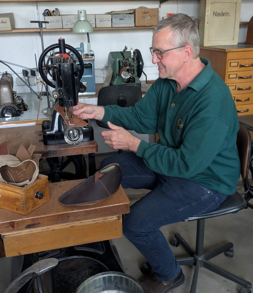 Zu Spitzenzeiten wurden täglich über 200 „Puschen“ (wie man hier in Norddeutschland sagt) oder „Schlappen“ (Mitteldeutschland) oder Latschen (Ostdeutschland) oder „Schluffen“ (Rheinland) täglich hergestellt.