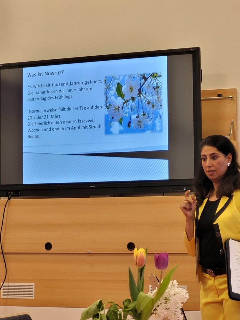 Foto: Masoume Pourtalebi erläutert die Bedeutung des persischen Frühlingsfestes