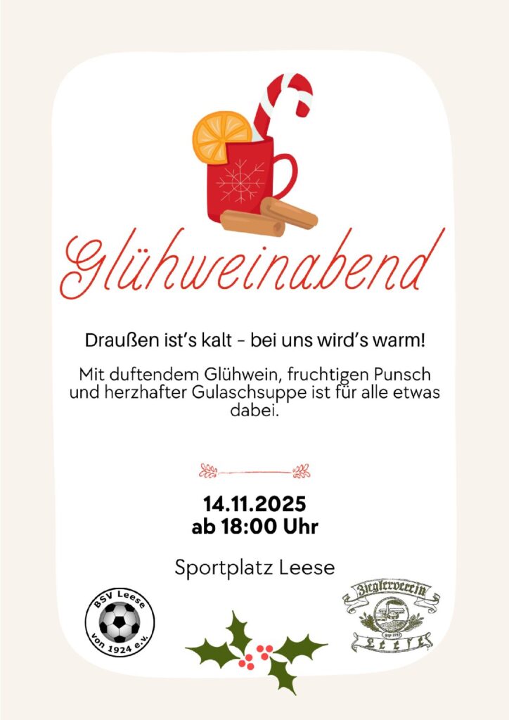 Der ZHV Leese und der BSV Leese laden zum Glühwein-Abend ein