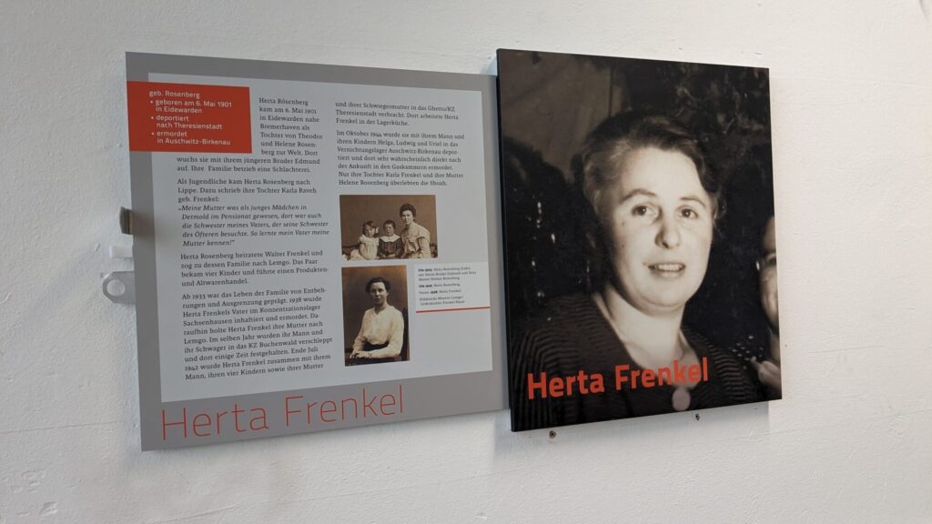 Die Tafeln erweitern somit die Dauerausstellung im Frenkel-Haus, da der Zugang zu den Öffnungszeiten stets über diesen Durchgang erfolgt. Zudem sind sie als Ergänzung zu dem vor den Haus platzierten Stolpersteinen zu verstehen.