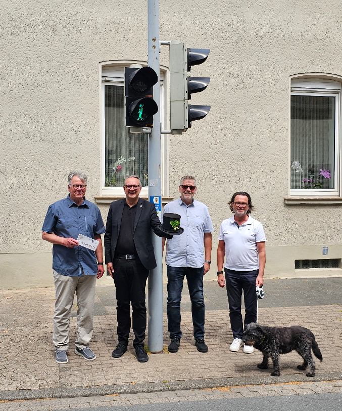 Die Idee für die Ampelmännchen war im vergangenen Jahr wurde aus dem Kreis der Schützinnen und Schützen geäußert und war im vergangenen Jahr von der Stadtverwaltung in die Politik eingebracht und vom Stadtrat mit großer Mehrheit beschlossen worden. Nun weisen an der Kreuzung mit der Luisenstraße und an der Kreuzung mit der Haferstraße die leuchtenden Schützen den Weg. An Zylinder, Fliege und Holzgewehr sind sie gut zu erkennen. Der Stadtrat hatte für die Aktion 2000 Euro genehmigt.